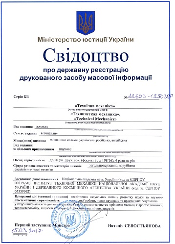 journal entitled Tekhnicheskaya Mekhanika (in Russian) and Tekhnichna Mekhanika (in Ukrainian). In 2017, the institute was issued a new state